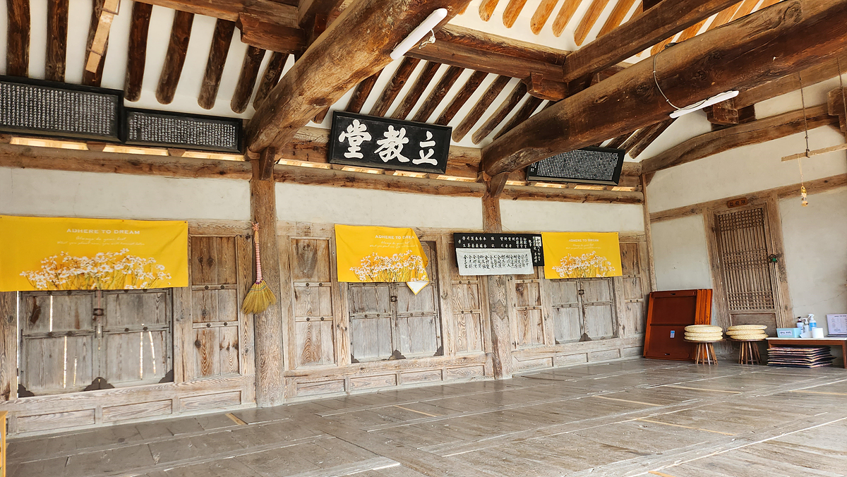 입교당 대청마루는 넓고 시원하다. 여기는 강당이라고 보면 된다. 한옥은 볼수록 과학적이고 멋스럽다. 여름철 저 대청마루에 앉아만 있어도 얼마나 시원할까?