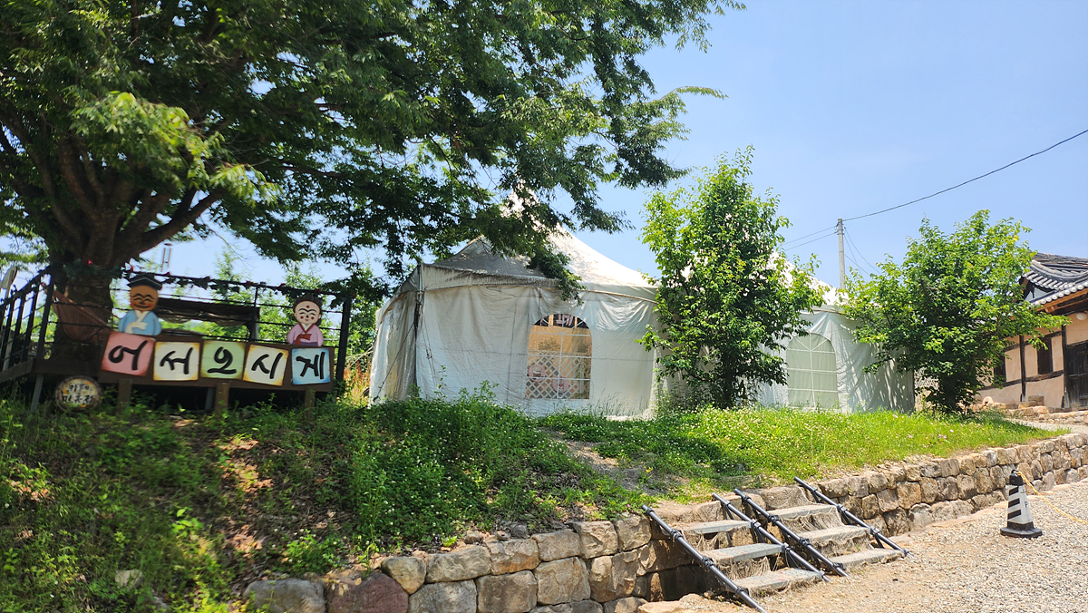 돌담위의 슬리퍼가 재밌다. 하룻밤 묵계 라고 적혀 있다. 알고보니 한옥숙박도 하고 있다.
