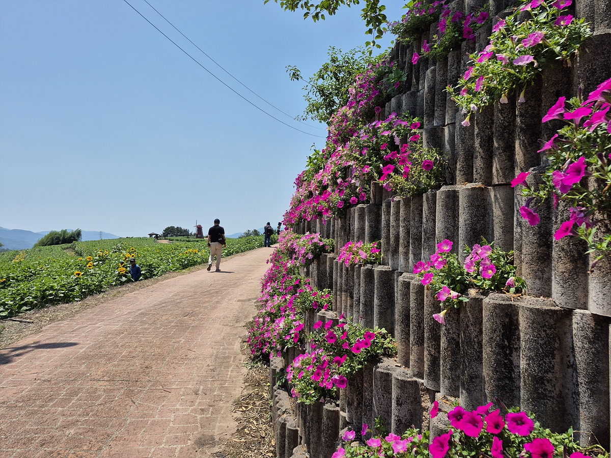 1단지 가는 길에 찐분홍 페튜니아 꽃이 많이 심어져 있어요. 여기도 너무 예뻐요.