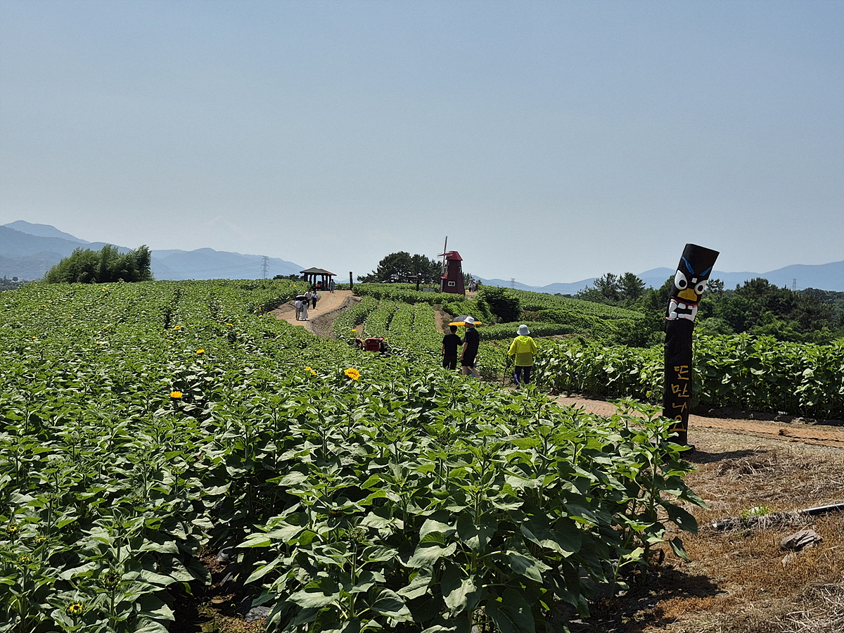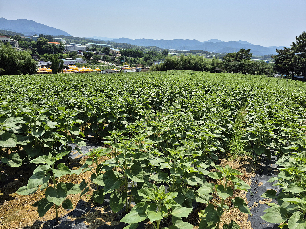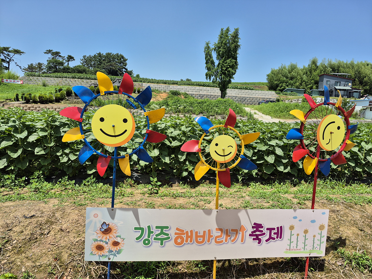 날씨가 너무 덥네요. 장마이긴 하지만 맑은 날은 한 낮의 태양이 너무 뜨겁습니다. 이렇게 뜨거운 태양아래 여름꽃의 대표적인 해바라기는 잘 자랍니다. 함안 강주에서 하는 해바라기 축제를 가봤으면 했는데 이번기회에 축제를 가게 되었습니다. 축제는 2025년 6월 18일부터 2025년 7월2일까지 입니다. 6월18일에 방문하였는데 입구근처 해바라기가 초록잎투성이라 놀랐습니다.
