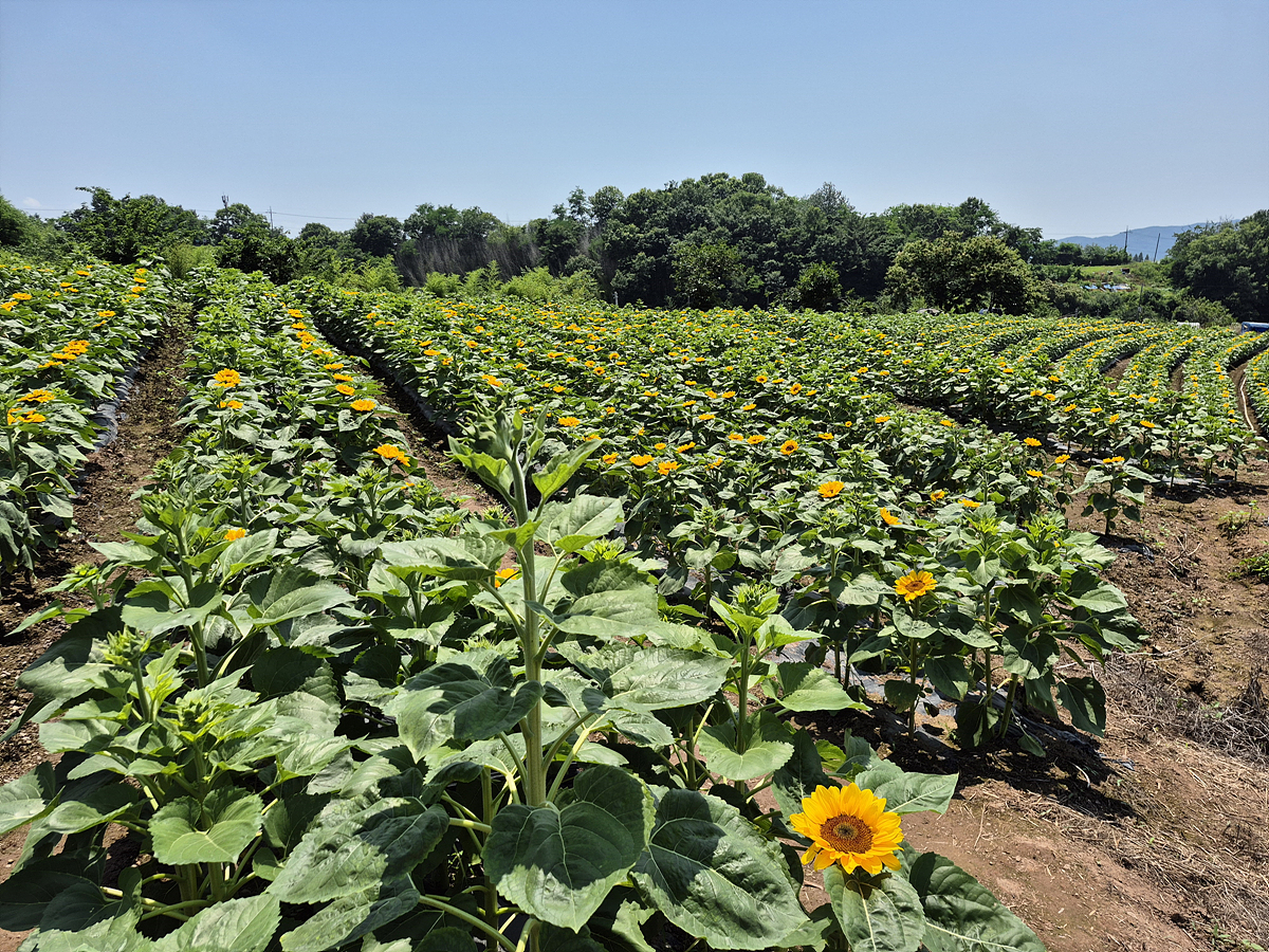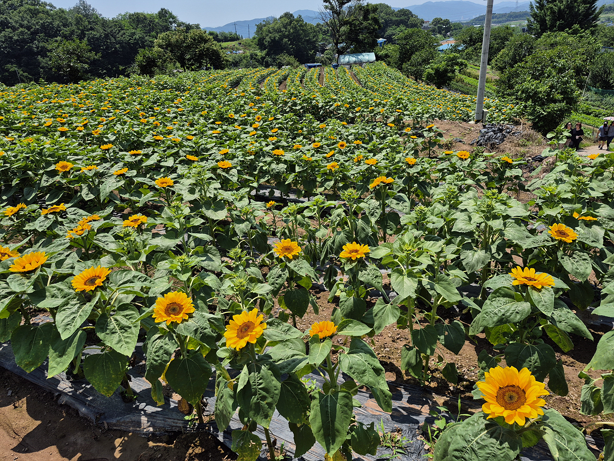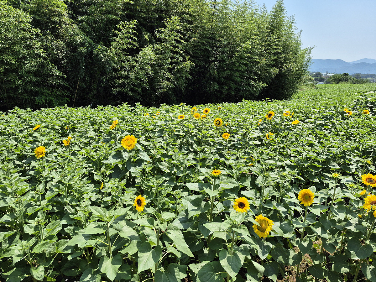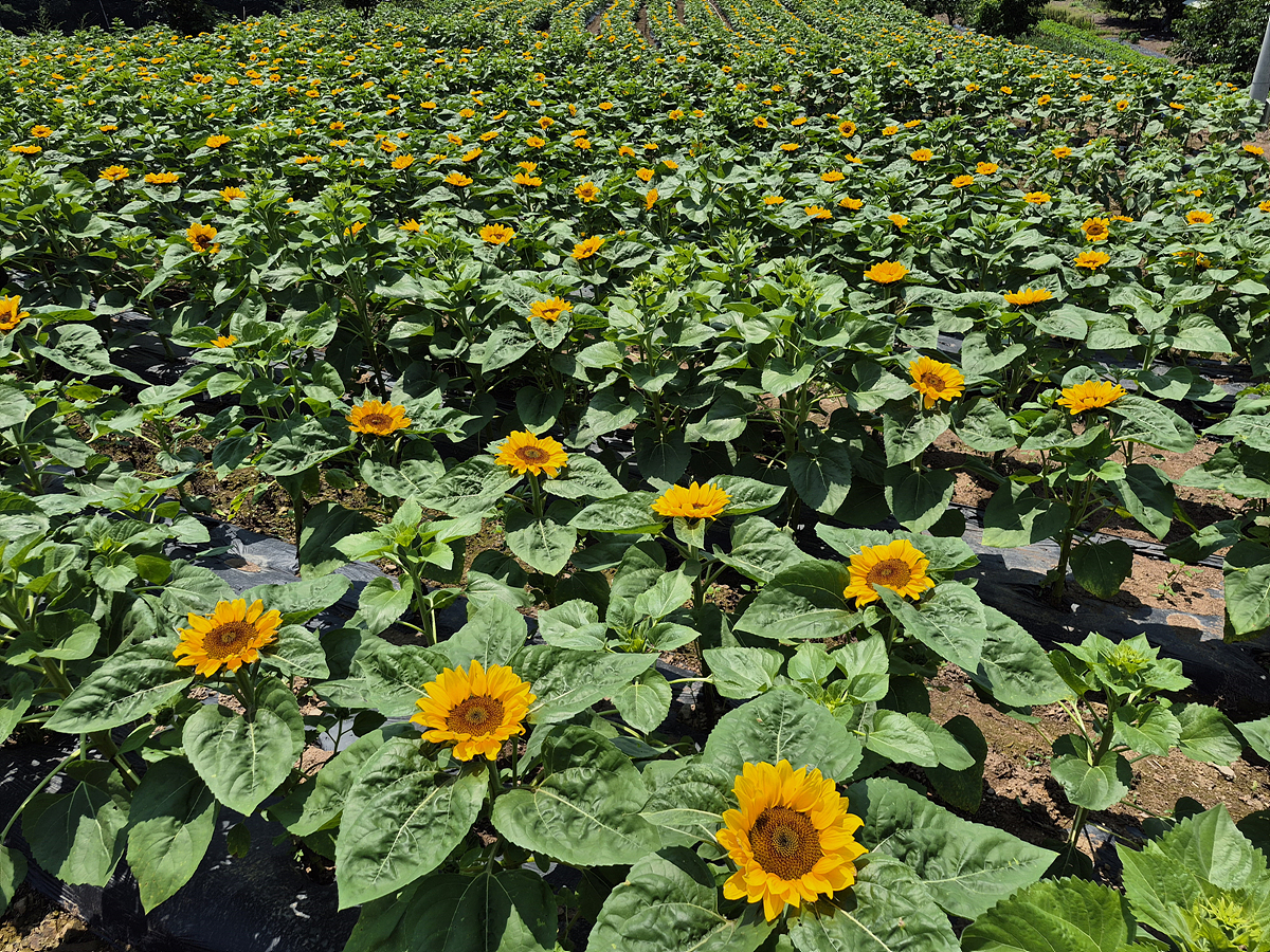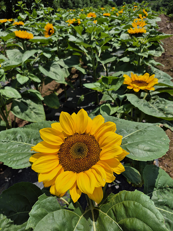 꽤나 규모가 있습니다. 해바라기가 키가 작지만 80프로 정도 개화한것 같습니다. 100프로 피면 너무 예쁘겠죠.