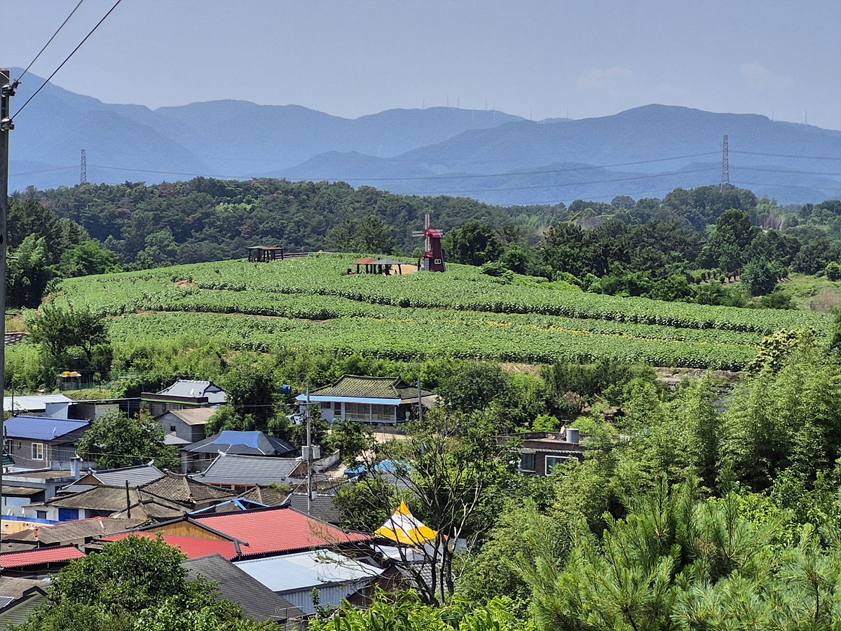 2단지에서는 1단지가 잘 보입니다. 저기 풍차가 있는곳이 1단지 해바라기밭이에요. 모두 노래진다면 너무 예쁘겠죠.
