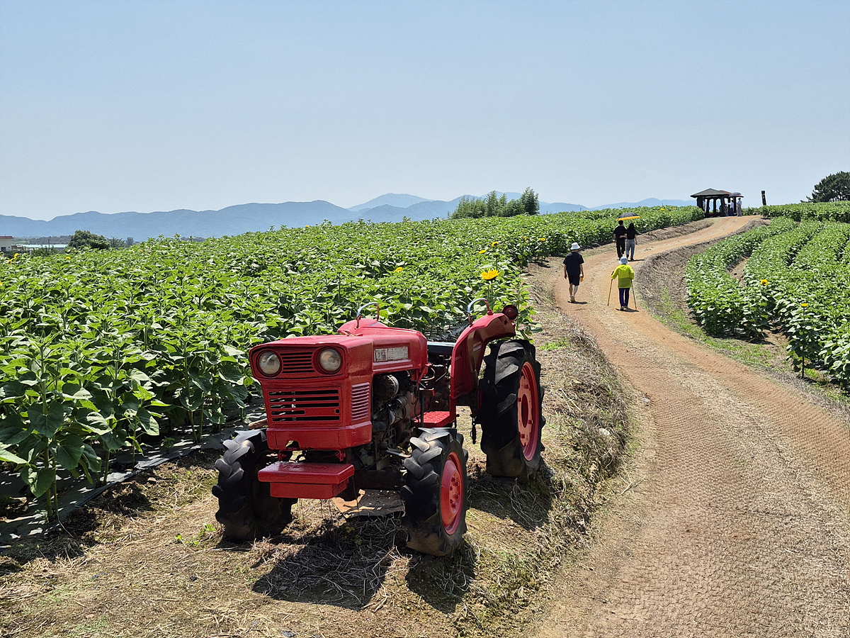 6월 27일정도는 활짝 피겠죠. 빨간 트랙터와의 조화가 너무 멋스럽네요.