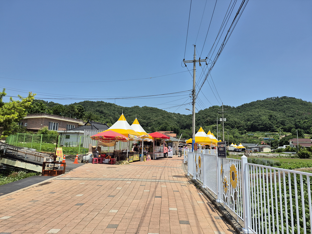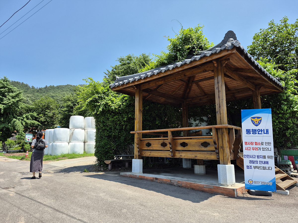 함안 강주마을에 방문할때는 모자,선글라스,양산 그리고 시원한 물은 필수입니다. 해바라기가 잘 자라는 곳이라 그런지 너무 너무 뜨겁고 덥더군요. 정자가 군데군데 있어서 한번씩 쉬어 주었답니다.