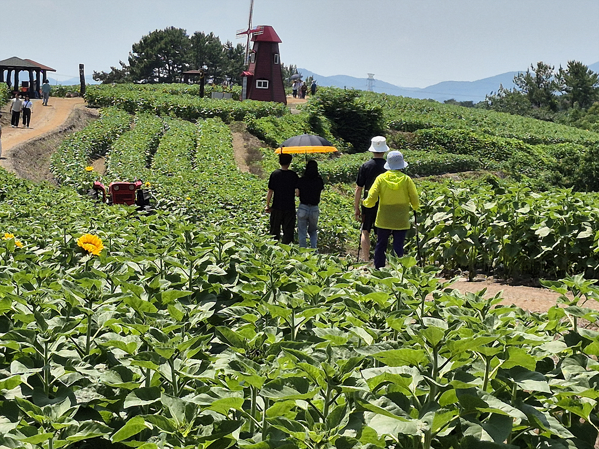 해바라기 밭이 아름다워요.